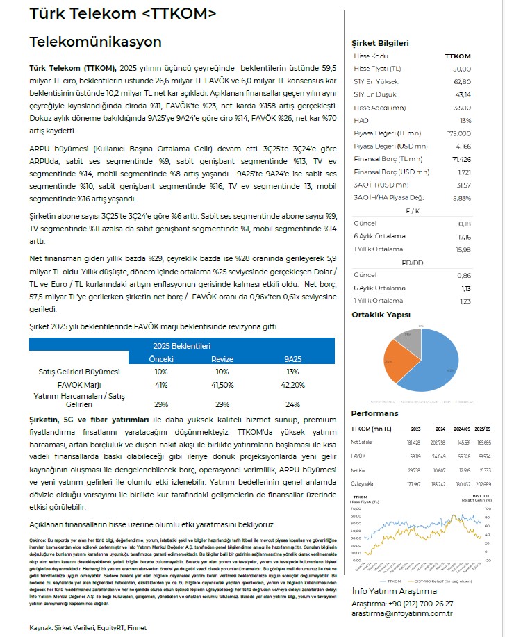 İnfo Yatırım’dan Türk Telekom Finansal Değerleme Raporu Haber 6 Kasım 2025can tokgöz Bu rapor İnfo Yatırım Tarafından Hazırlanmıştır