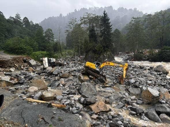 Rize’nin Ardeşen ilçesinde Deremezra köyünde sel sularına kapılarak sürüklenen 2 iş makinesi ve bir taşıyıcı kamyon, sel sularına kapıldı.