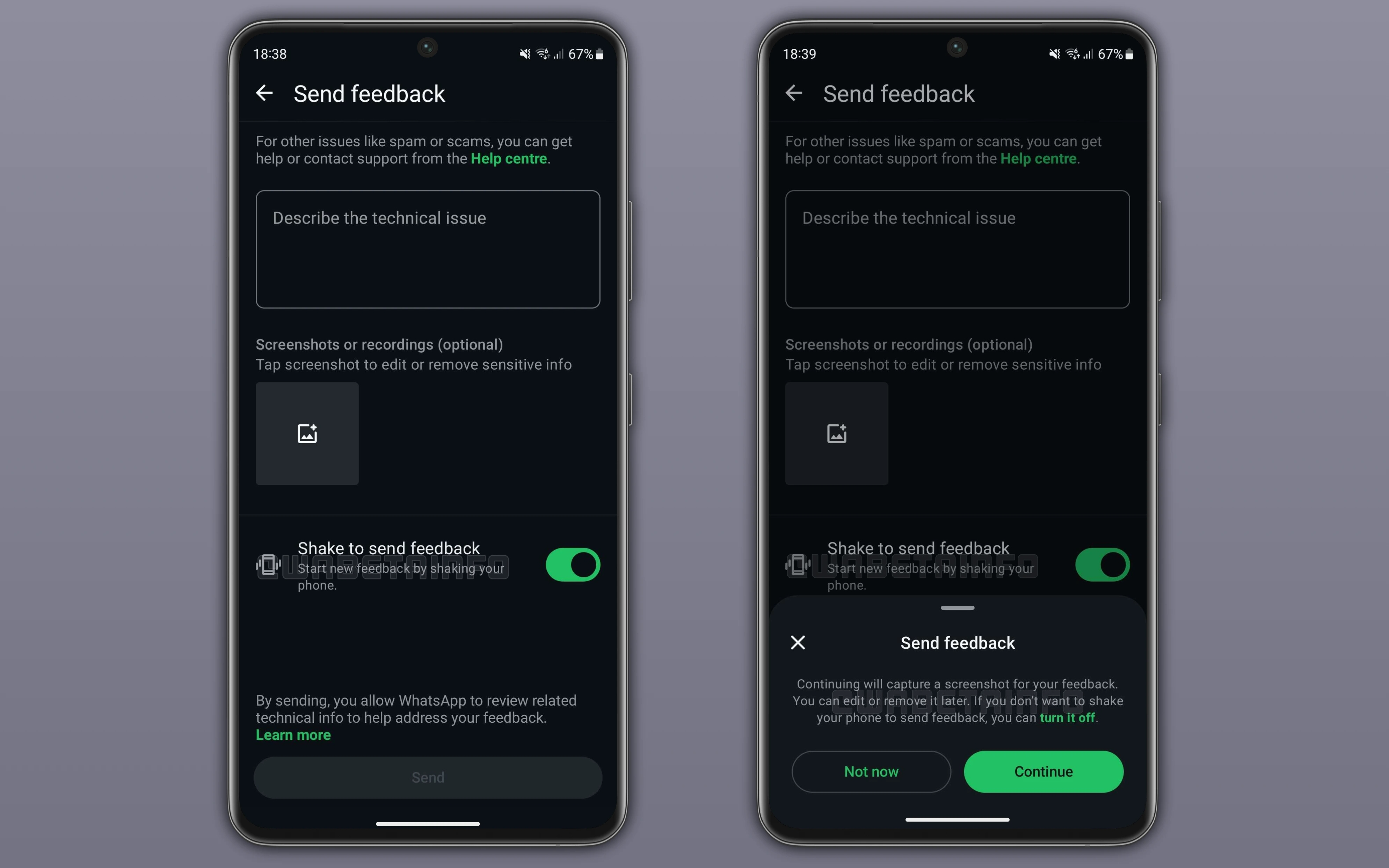 WhatsApp, hata bildirim sürecini iyileştirmeye devam ediyor. Platform büyüdükçe ve daha fazla özellik geldikçe, hatalarla karşılaşma olasılığı da doğal olarak artıyor ve bu geliştirmeler hem kullanıcılar hem de geliştiriciler için daha da önemli hale geliyor. Android için en son WhatsApp beta 2.25.34.6 güncellemesi, kullanıcıların cihazlarını sallayarak hataları bildirmelerine olanak tanıyan bir özelliği getiriyor. Yeni sallayarak bildirme özelliği, kullanıcıların sorun bildirme formunu anında açmasına olanak tanıyacak. Kullanıcı, telefonunu salladığında sorun bildirmek isteyip istemediğini soran bir ekran açılacak. Onayın ardından, WhatsApp otomatik olarak ekran görüntüsü alacak ve sorunu açıklayan bir form açacak. Kullanıcı, eklemek istemezse ekran görüntüsünü kaldırabilecek. Gizliliği korumak için, profil fotoğrafları gibi hassas kısımların ekran görüntüsü alınmayacak.
